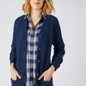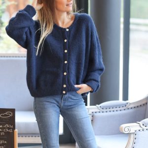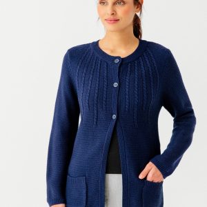 Cardigan à col rond en cachemire torsadé bleu marine | 3 Suisses