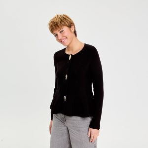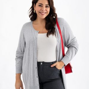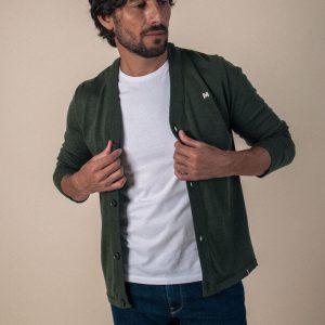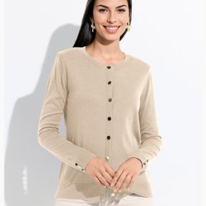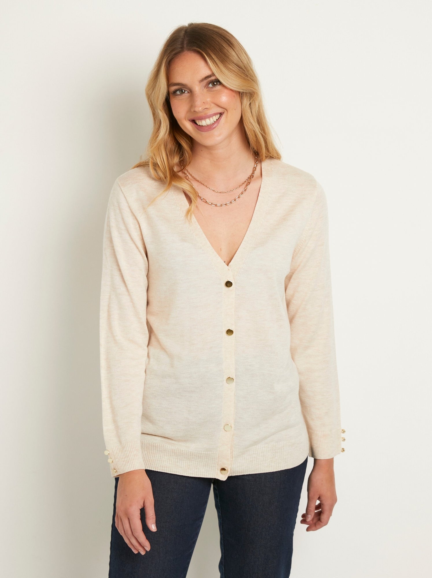 Gilet fin col V boutonné jersey uni avec laine mérinos Beige